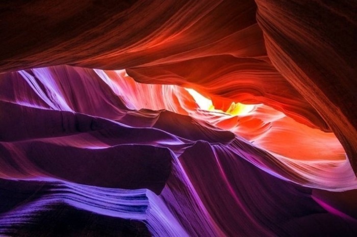 미국 애리조나주에 있는 앤텔로프 캐니언은 암벽틈새로 물이 흐르면서 깊고 좁은 협곡이 되었습니다.
