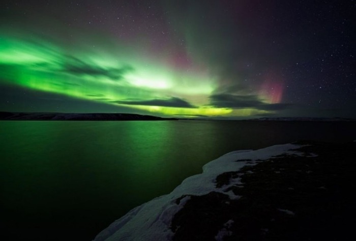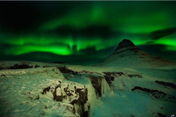 아이슬란드의 고원은 낮에는 간헐천과 빙하, 분화구로 가혹한 환경을 보여주지만 밤이되면 멋진 오로라 현상으로 놀라움을 줍니다.