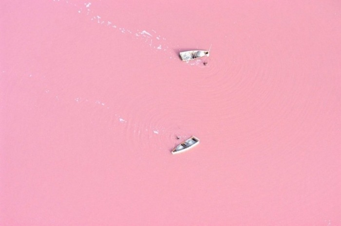 물속에 많은 박테리아와 조류에 의해 핑크빛으로 변한 호수입니다. 하지만 주변 생태계에 영향을 주진 않는다고 하네요.