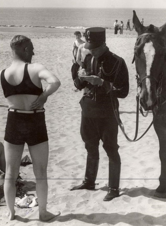 네덜란드의 Heemskerk 해수욕장에서 풍기문란죄로 단속중인 경찰. 1931년.